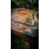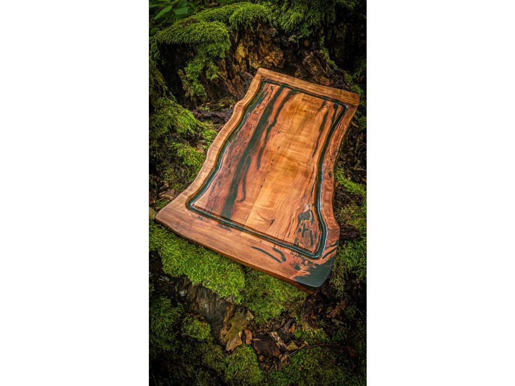 Ručně vyráběné kuchyňské prkénko z prastaré hrušně s epoxidovou pryskyřicí, žlábkem a nožičkami. Rustikální design, vysoká pevnost a přírodní zpracování.
