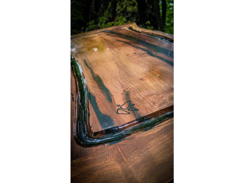 Ručně vyráběné kuchyňské prkénko z prastaré hrušně s epoxidovou pryskyřicí, žlábkem a nožičkami. Rustikální design, vysoká pevnost a přírodní zpracování.